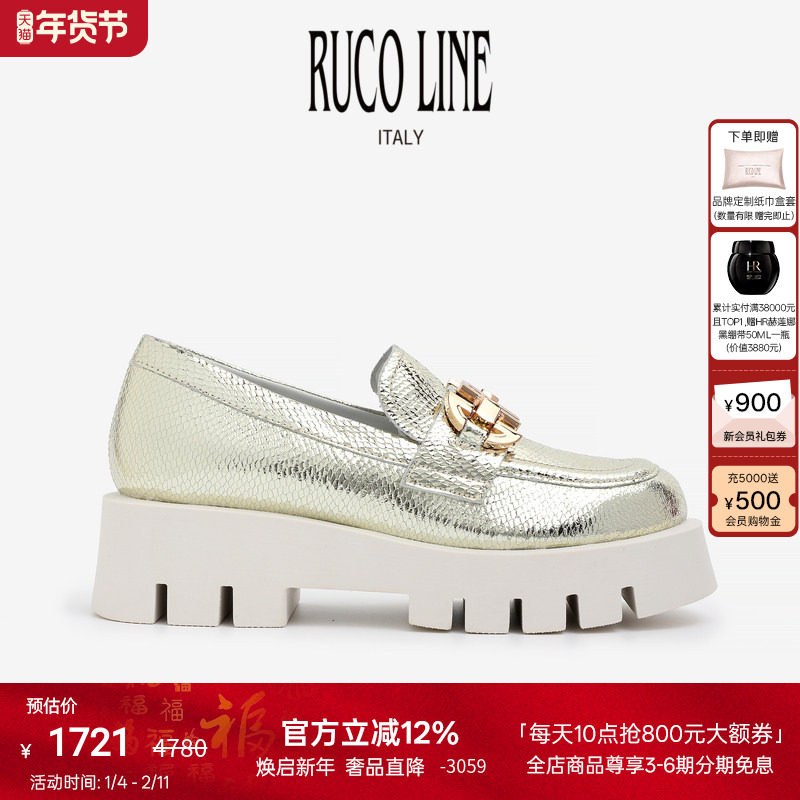 Ruco Line如卡莱蛇纹漆皮单鞋女士新款厚底中跟休闲鞋5cm增高鞋
