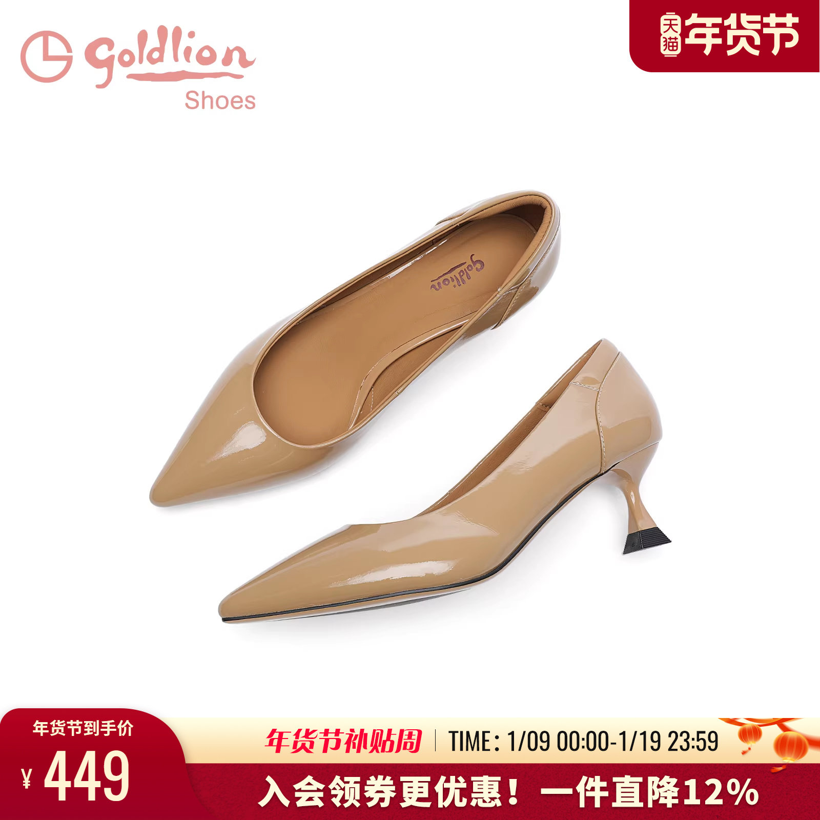 金利来秋季新款气质高跟鞋女细跟尖头职业通勤女鞋浅口漆皮单鞋女