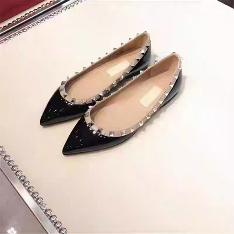 2025新款春夏铆钉漆皮单鞋女大码女平底鞋浅口尖头柳丁软底船鞋女