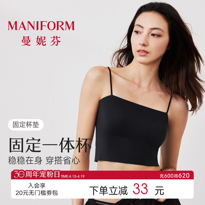 曼妮芬短款带杯垫细肩带背心无钢圈免穿文胸女凉感吊带可外穿打底