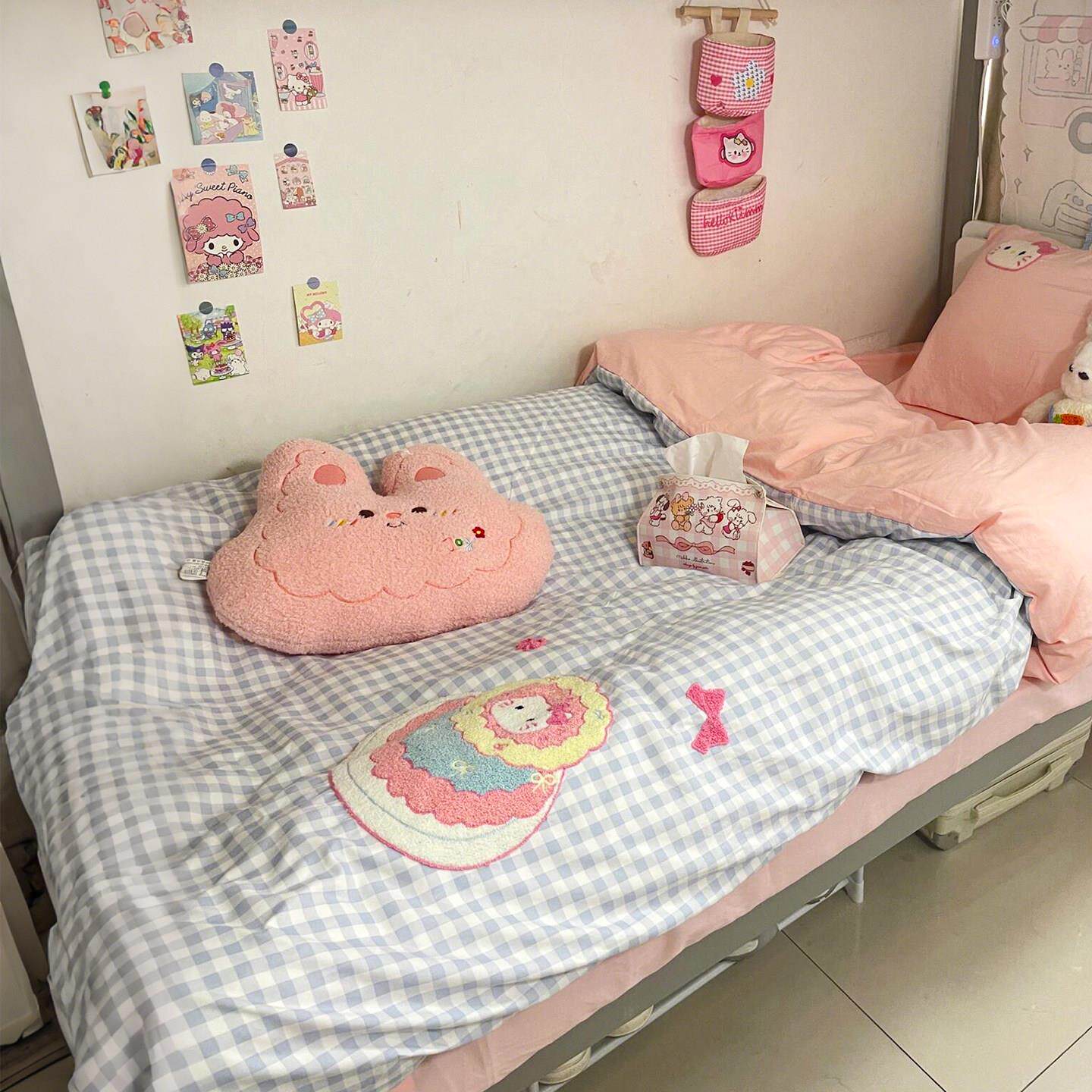 碎花格子kitty纯棉双层纱被套三四件套床品童趣宿舍柔软床单床笠