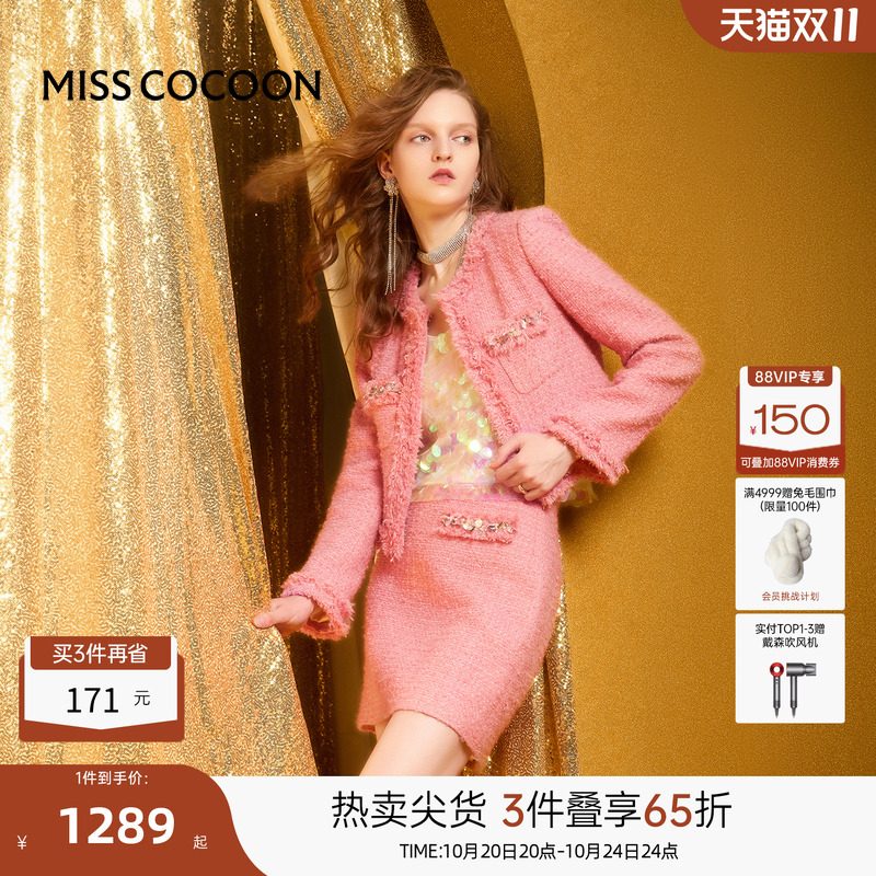 可可尼COCOON2025夏季新款小香风套装名媛粉色新年穿搭气质两件套