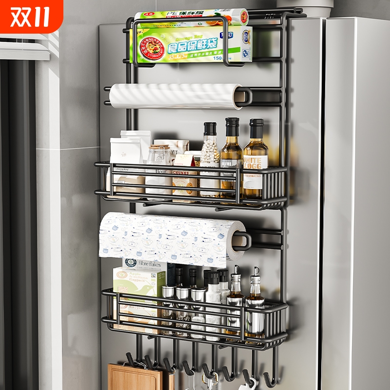 冰箱置物架厨房多功能保鲜膜调料品多层挂式挂钩侧边侧面收纳架子