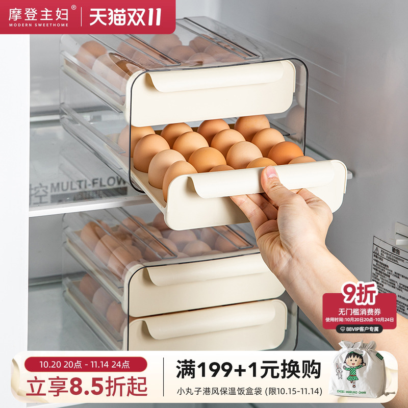 摩登主妇冰箱鸡蛋收纳盒抽屉式家用厨房保鲜放鸡蛋盒置物架整理盒