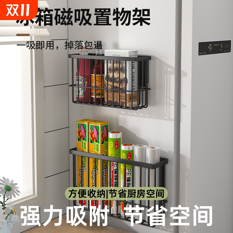 磁吸冰箱置物架外侧面收纳盒挂架免打孔调料保鲜膜厨房入户门玄关