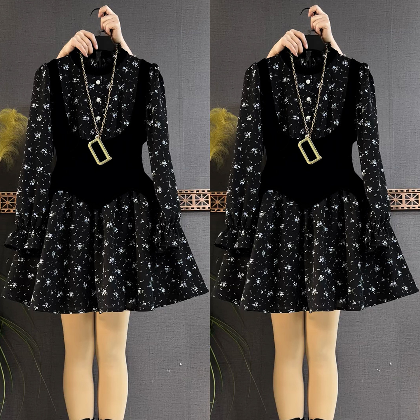 - 碎花雪纺衬衣