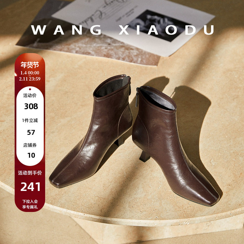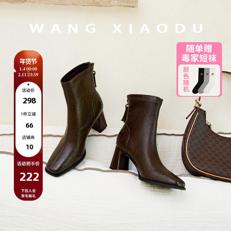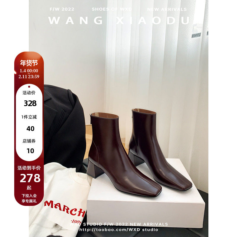 原创【王小毒】步履芍药●3cm方头短靴女粗跟通勤拉链复古瘦瘦靴