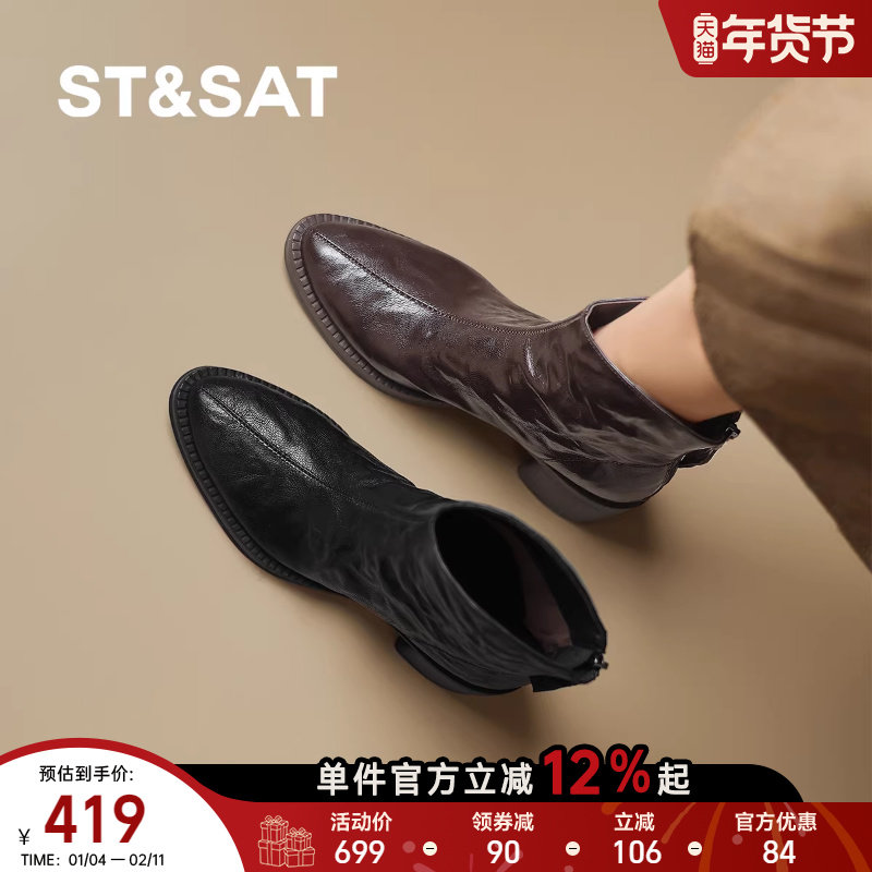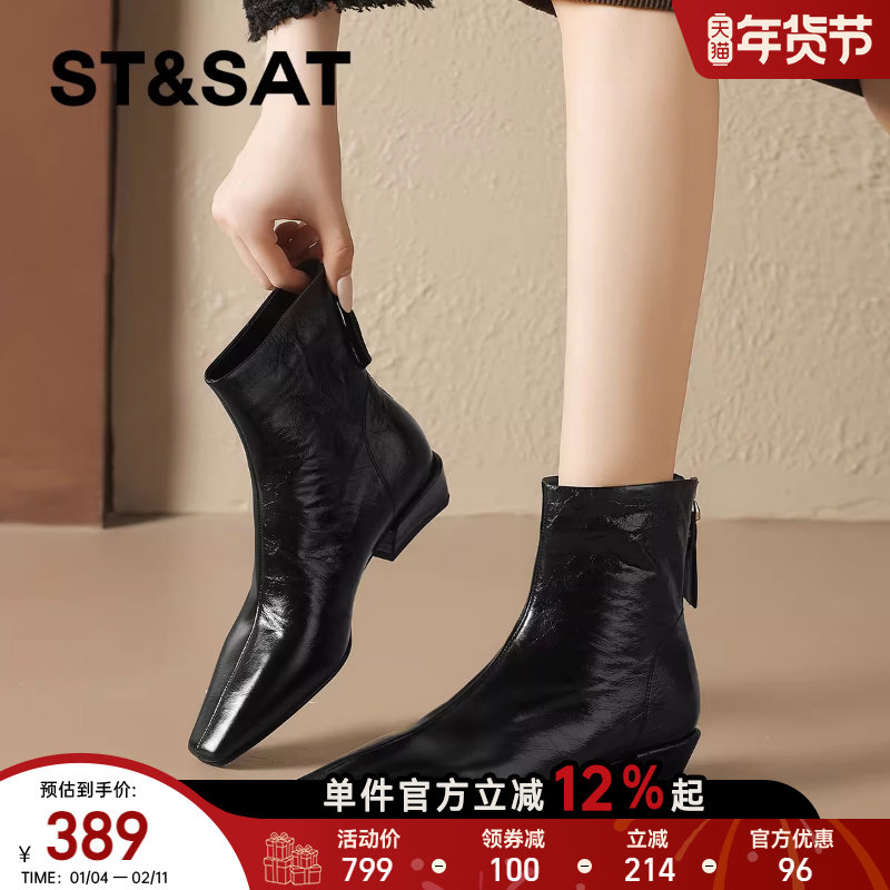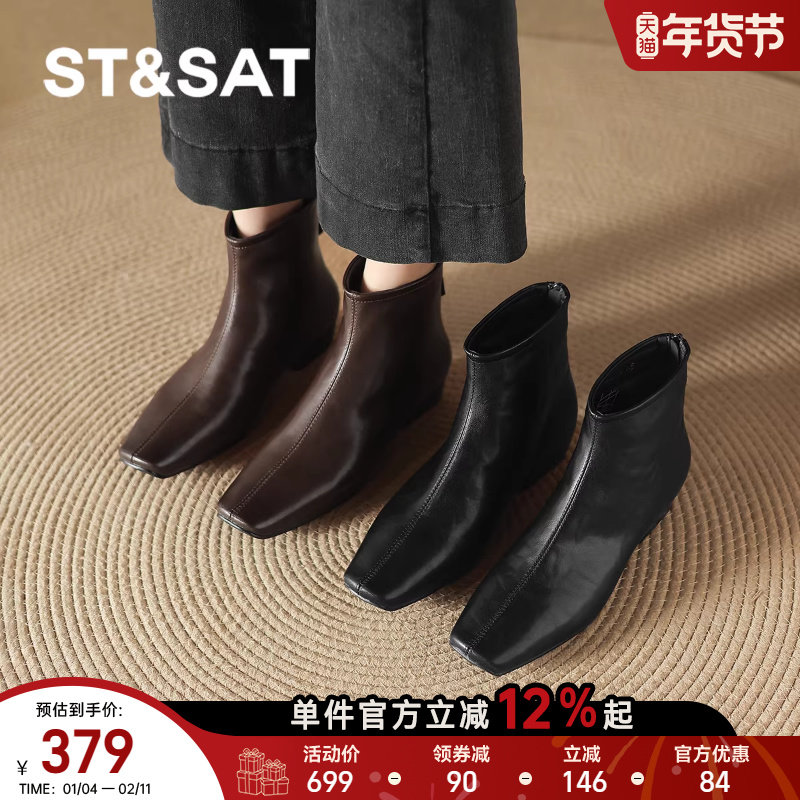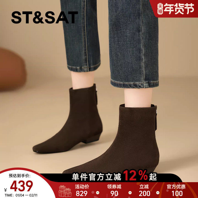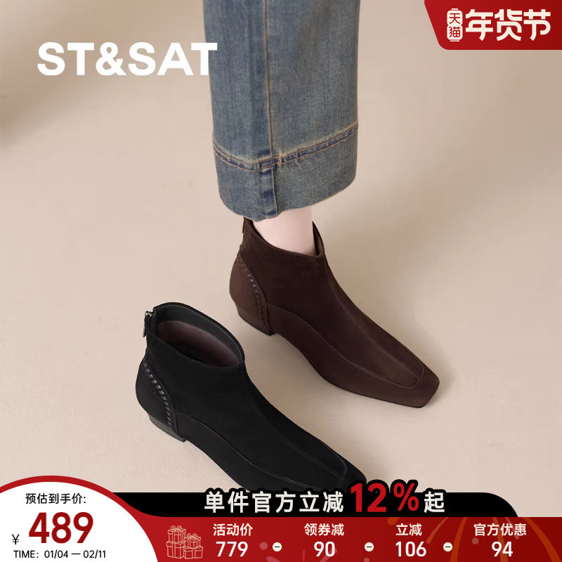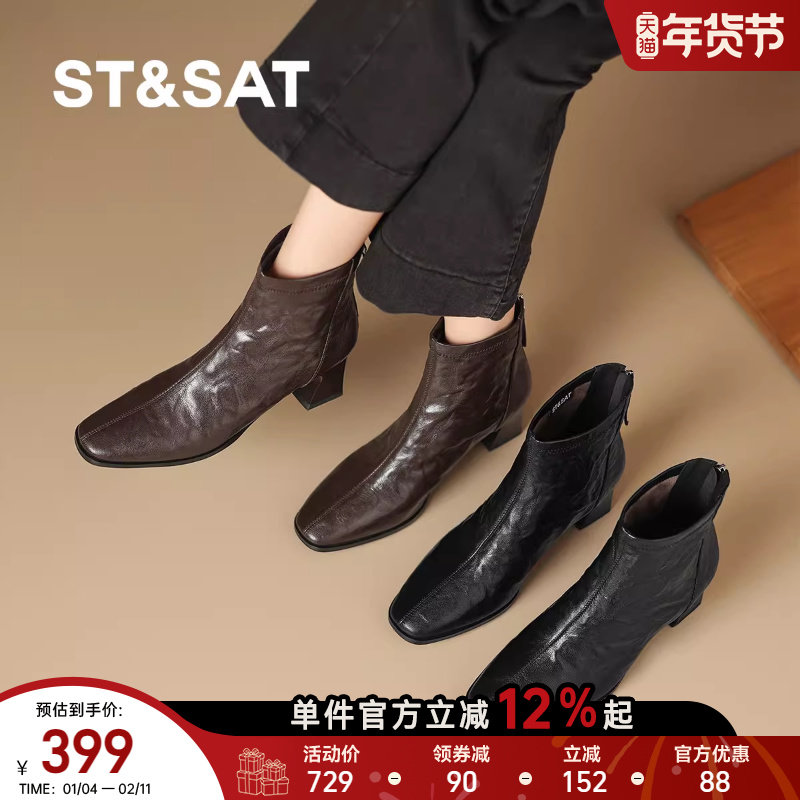 星期六2025秋冬新款法式复古方头短靴外穿不累脚百搭保暖时装短靴