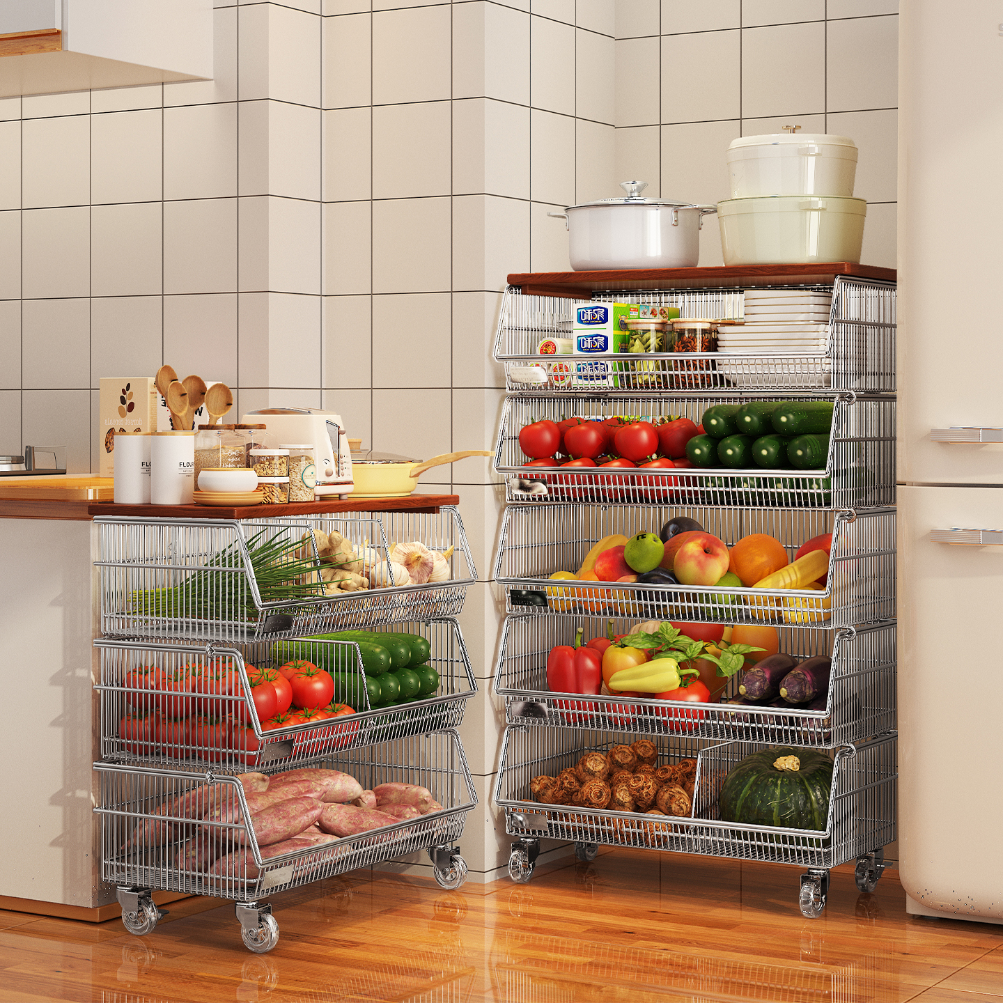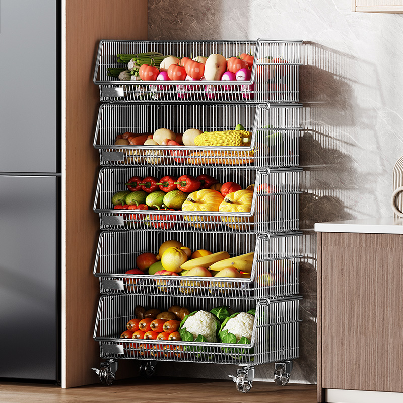 落地多层带轮子放菜架子厨房菜篮子置物架蔬菜收纳筐果蔬收纳篮子