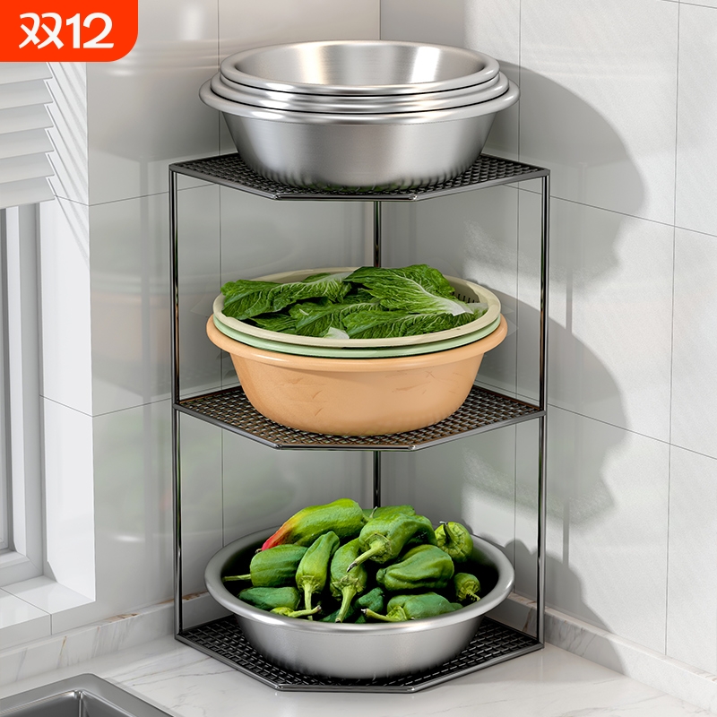 洗菜盆置物架厨房篮子收纳台面盆子放菜篮橱柜多层蔬菜收纳筐角落