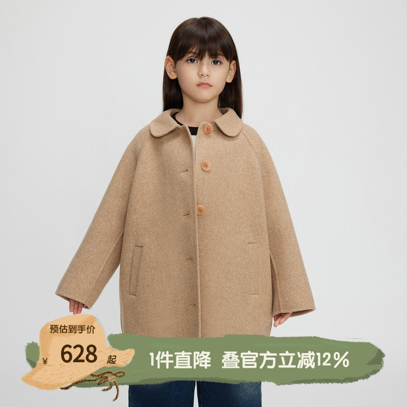 IVY HOUSE常春藤童装女童外套冬季款 双面呢大衣娃娃领羊毛保暖
