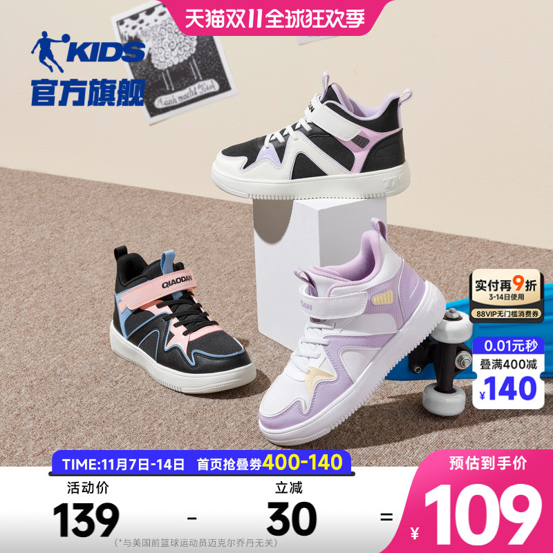 乔丹童鞋女童板鞋高帮中大童鞋子春秋新款百搭休闲儿童运动鞋女孩