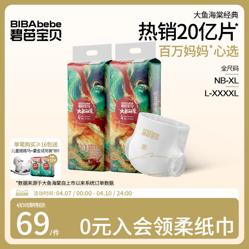 碧芭宝贝大鱼海棠纸尿裤婴儿尿不湿拉拉裤轻薄透气2包乳木果精华