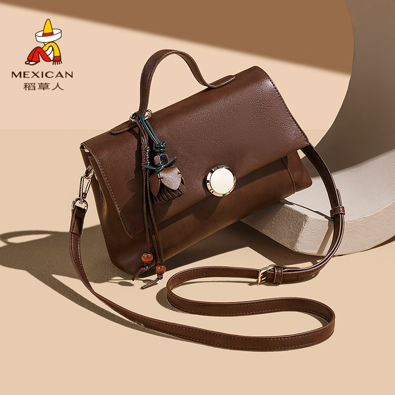 稻草人包包女2025新款复古单肩斜挎包质感通勤百搭小众设计手提包