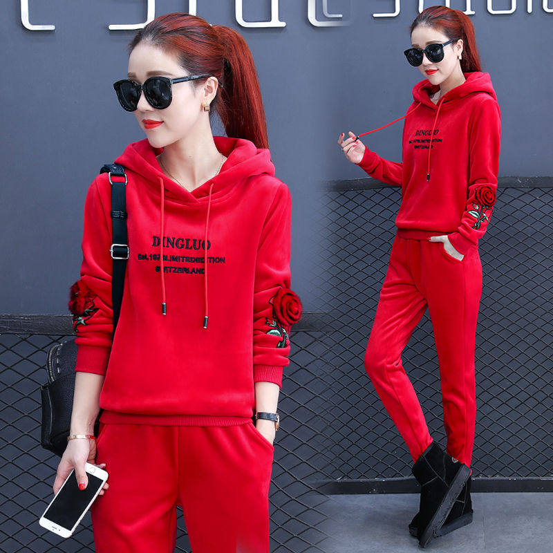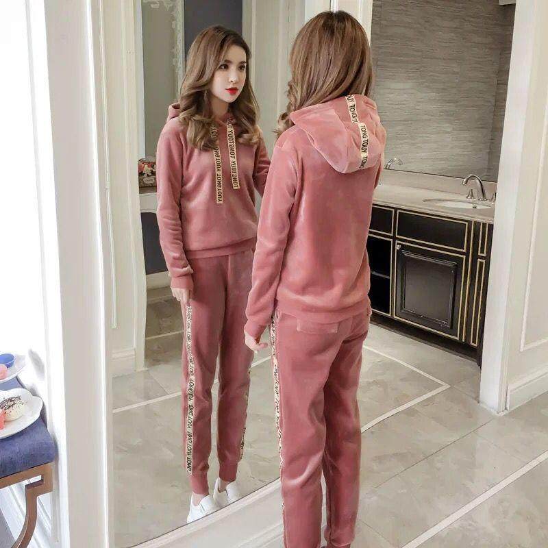 时尚运动休闲卫衣加绒加厚两件套天鹅绒秋冬新款金丝绒时髦套装女