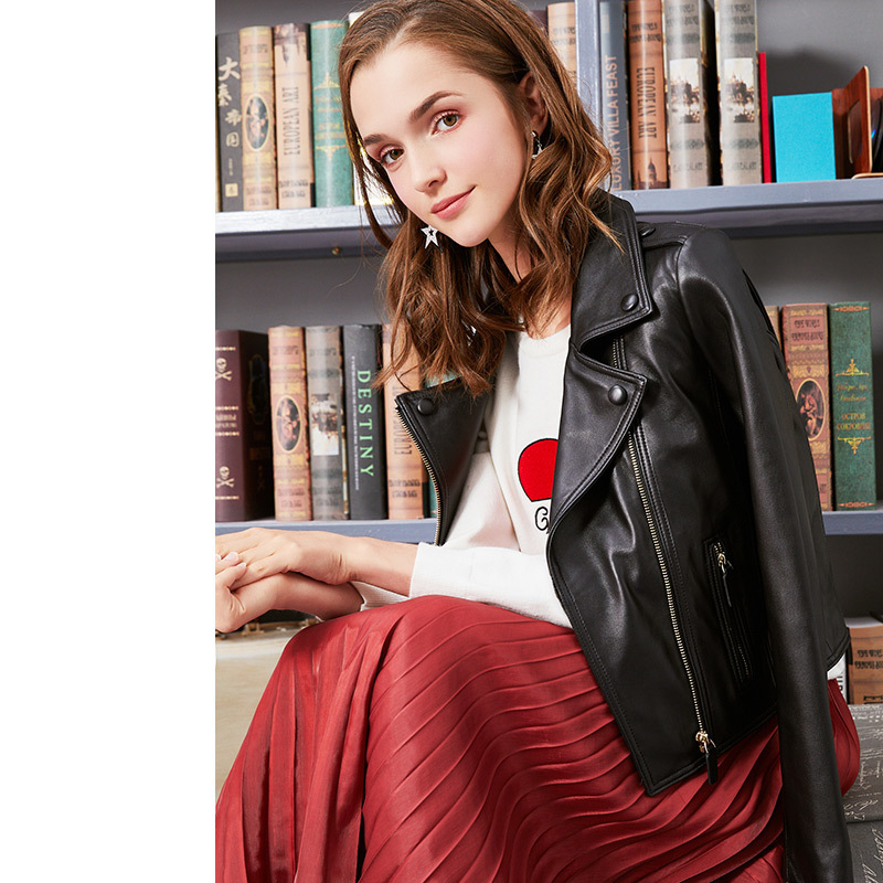 真皮皮衣女士修身显瘦短外套2023春秋新款海宁绵羊皮夹克机车服