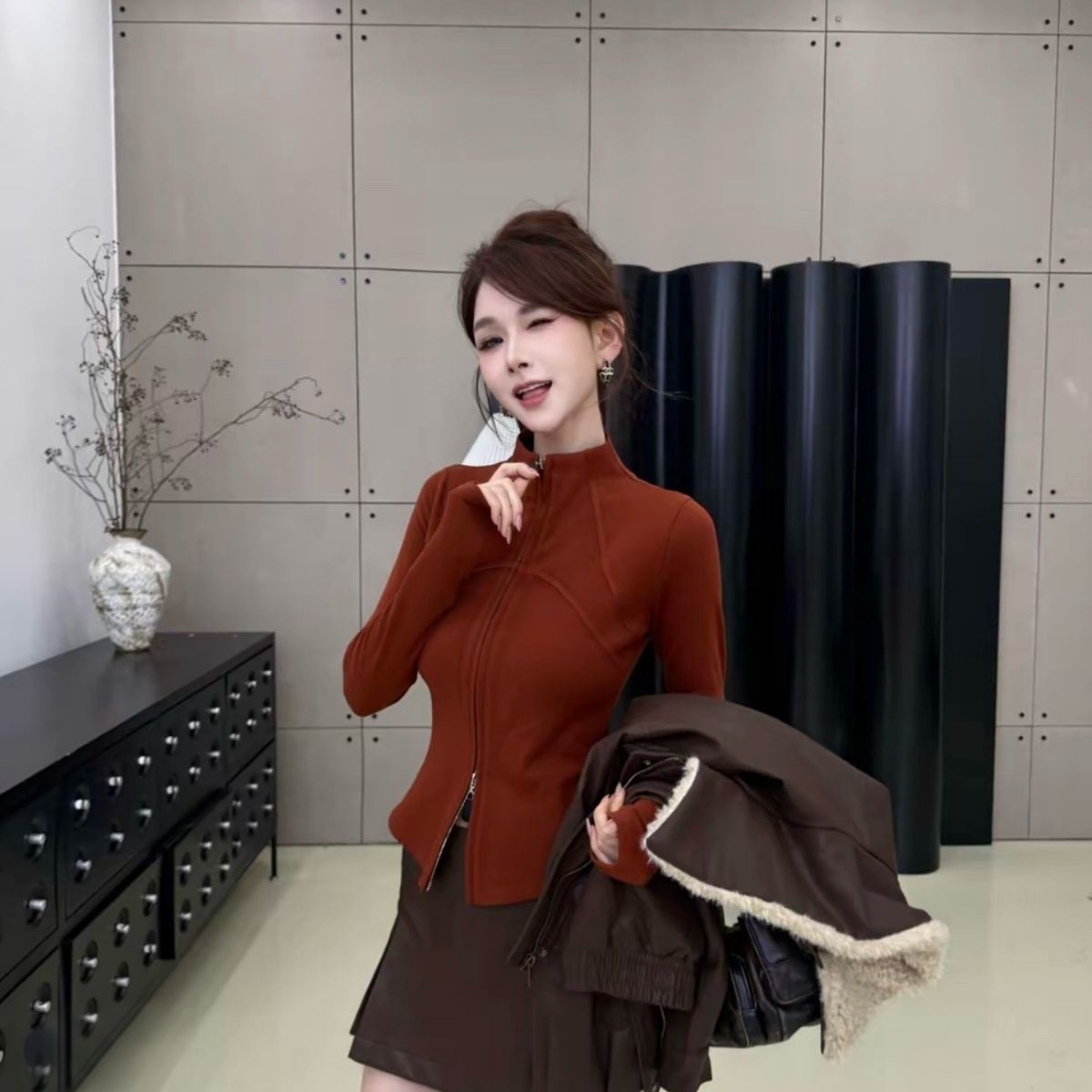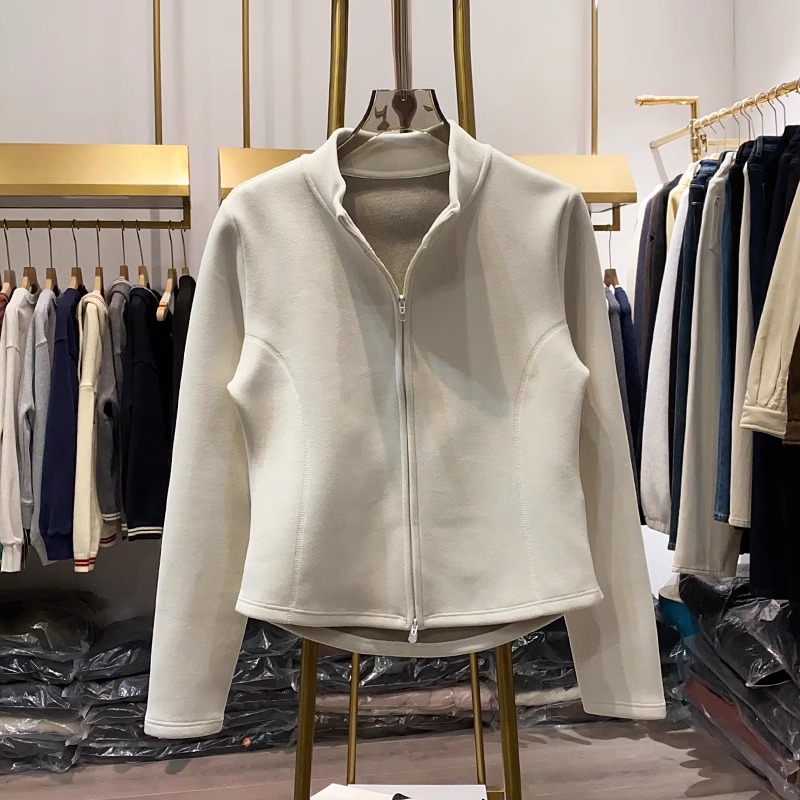 辣妹小蛮腰~纯色立领拉链开衫外搭上衣女2025秋装修身显瘦短外套