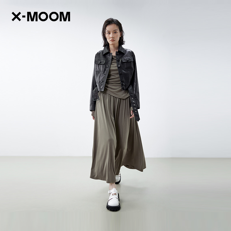 【商场同款】X--MOOM2025春季新款绵羊植鞣皮衣修身显瘦短外套女