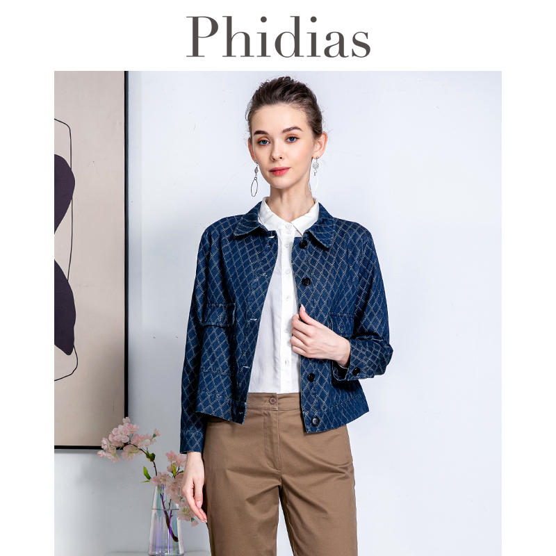 Phidias菱格修身显瘦短外套女春季2024新款大码女装翻领长袖上衣