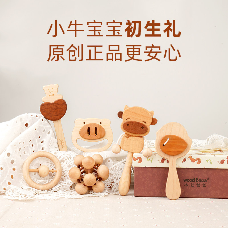 宝抓宝早乐教益智安抚木质摇铃套装蒙奥氏尔夫器婴217儿握训练玩