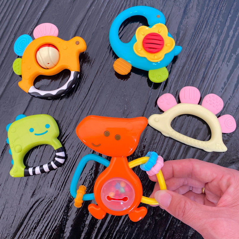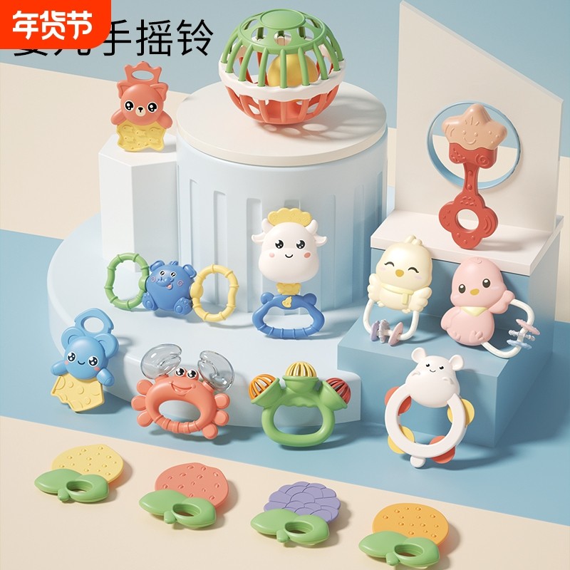 爆款宝宝牙胶手摇铃套装3-6-18个月咬咬乐婴儿抓握训练玩具抖音款