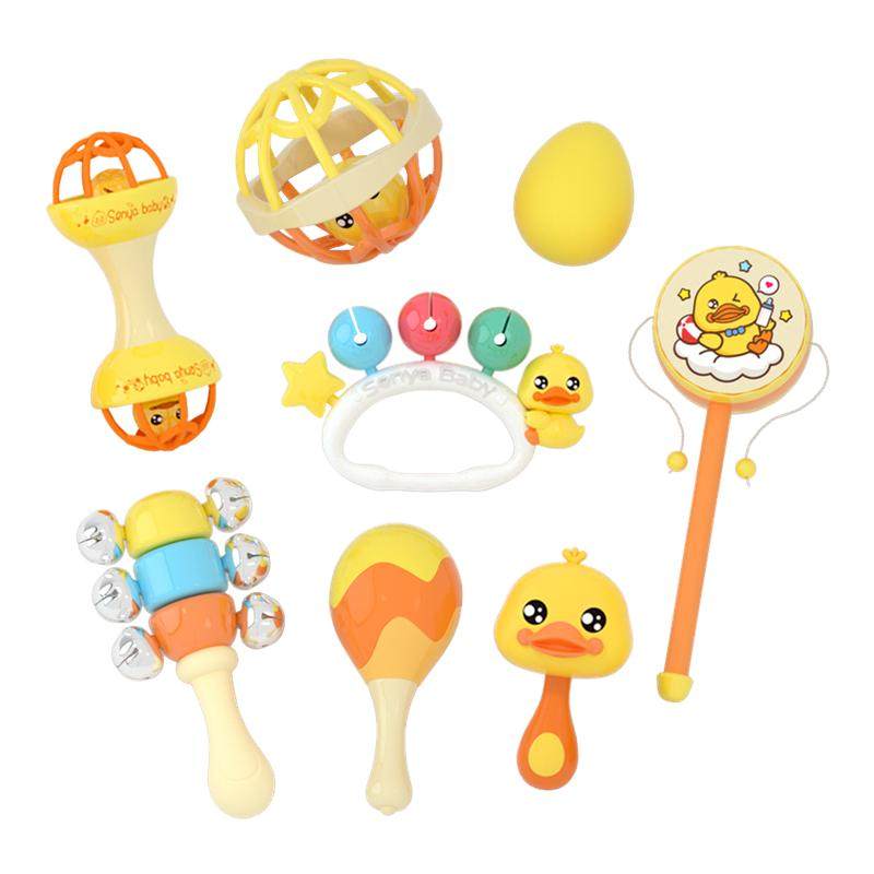 婴儿玩具0一1岁小黄鸭早教益智沙锤摇铃套装新生宝宝安抚训练礼物