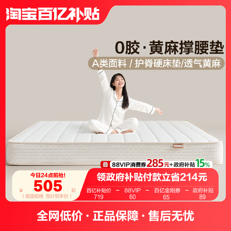 麻大师豆芽黄麻护脊腰双人硬垫乳胶弹簧记忆棉席梦思厚床垫子家用