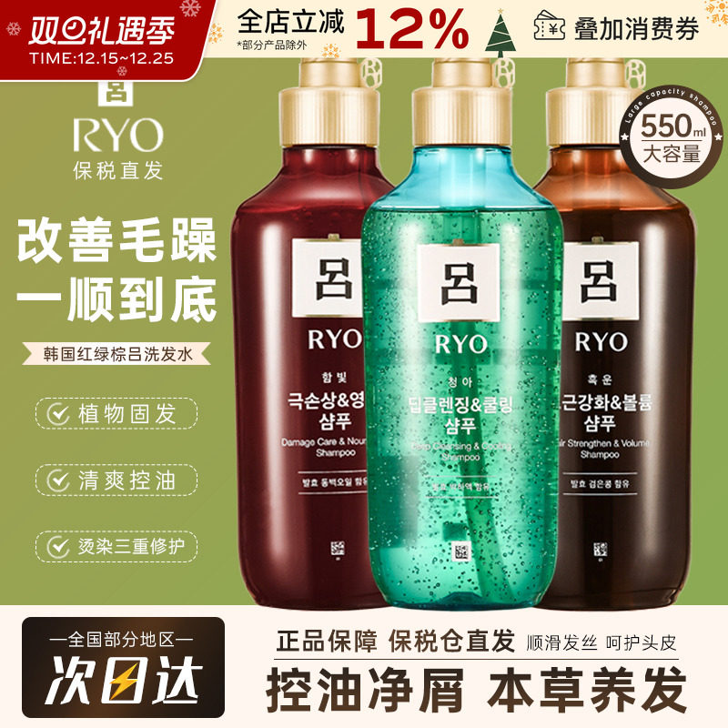 吕洗发水920ml红吕绿吕蓝吕控油蓬松去屑保湿ryo韩国爱茉莉柔顺