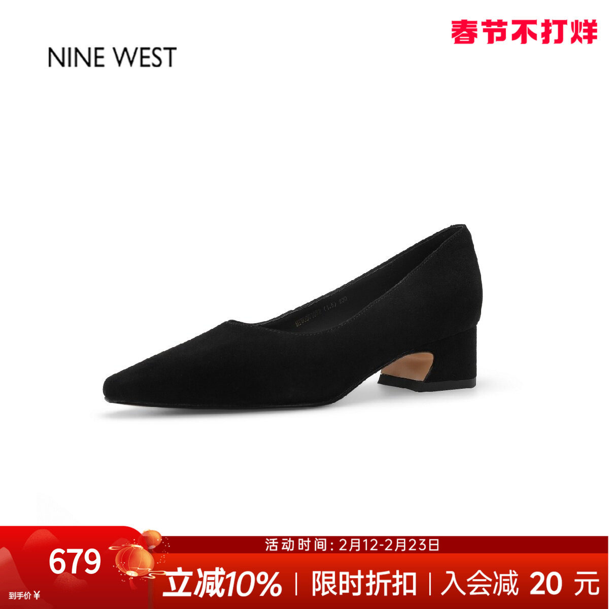 奥莱专供Nine West/玖熙通勤百搭尖头单鞋女粗跟中跟浅口工作鞋