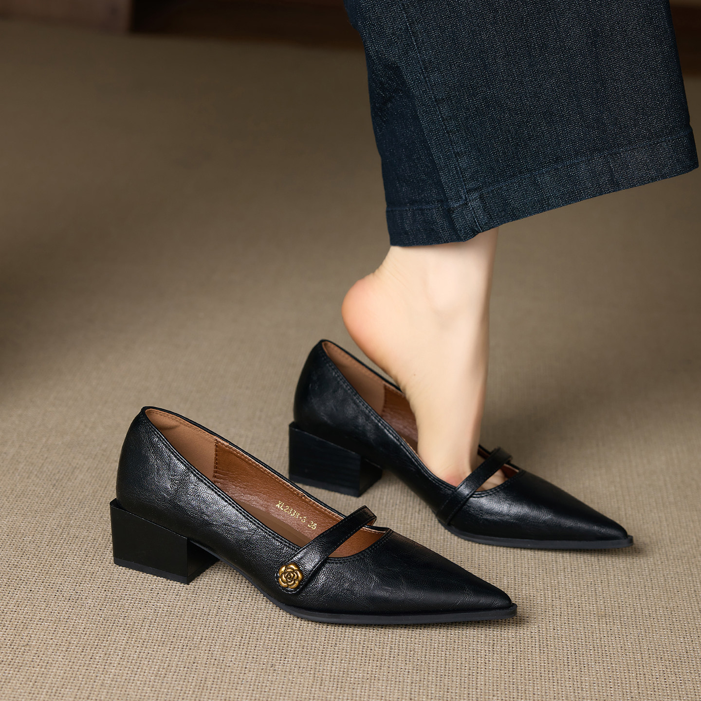 - 尖头中跟高跟鞋