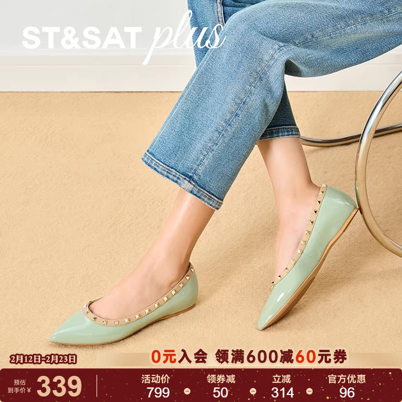 - 铆钉尖头平底单鞋