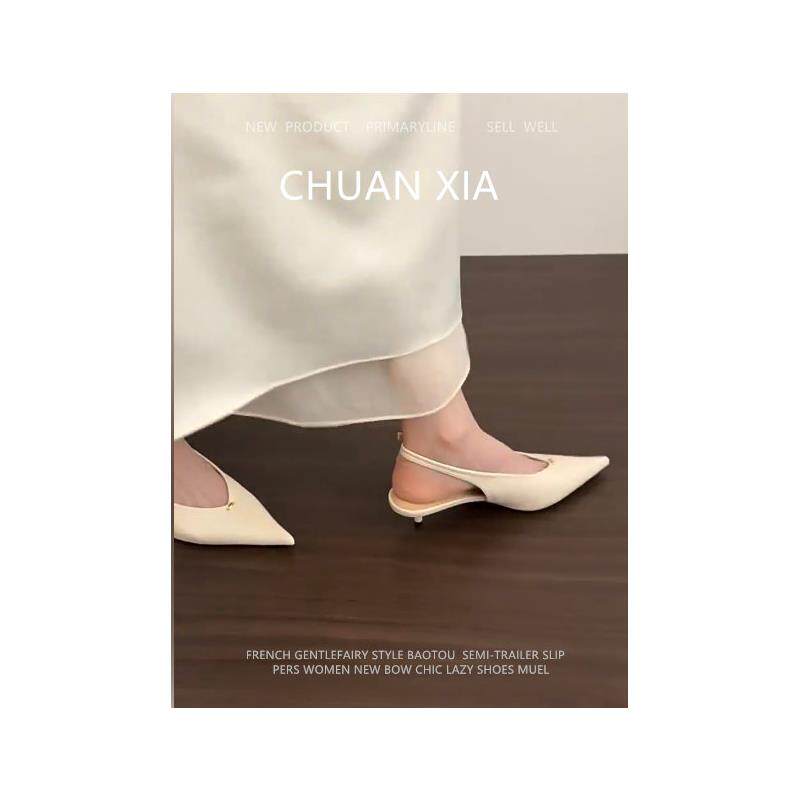 羊皮版~小众时髦包头凉鞋女真皮温柔细跟高跟鞋时尚百搭尖头单鞋