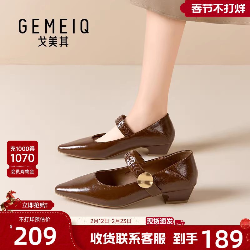 戈美其商场同款玛丽珍鞋中跟2026年春新款法式百搭尖头单鞋一脚蹬