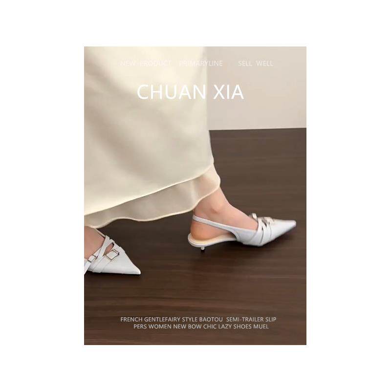 羊皮版~小众设计感包头凉鞋女法式小猫跟高跟鞋真皮百搭尖头单鞋