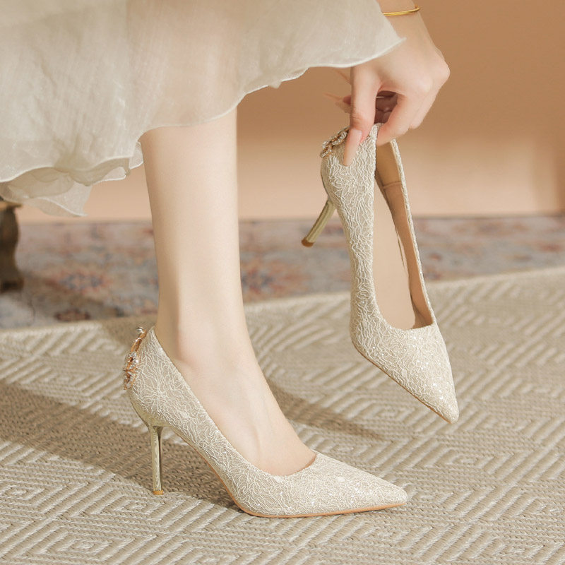 水钻高跟鞋女2026年新款法式订婚新娘鞋禾秀婚纱细跟百搭尖头单鞋