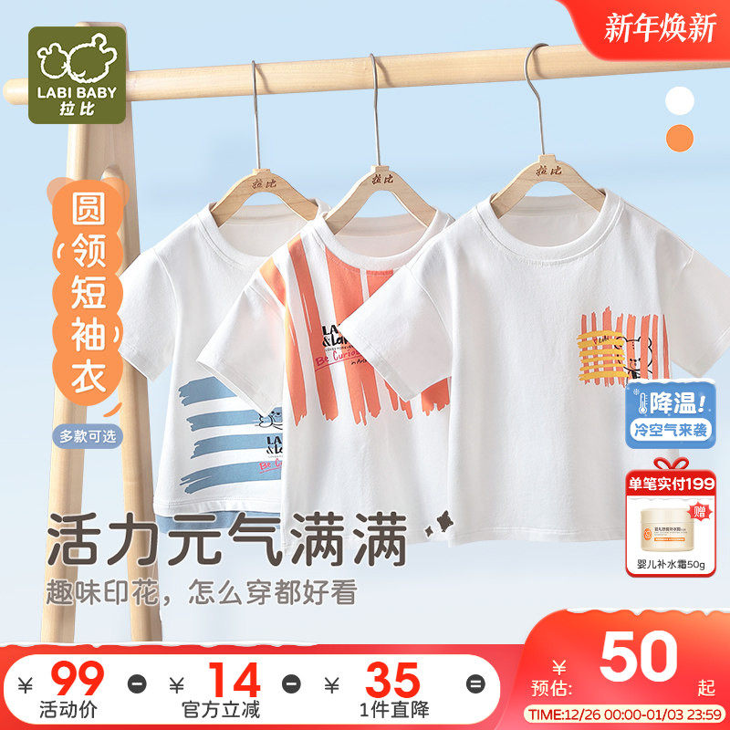 拉比儿童短袖2025夏季新款男女宝宝短袖t恤圆领中小童短袖t恤上衣