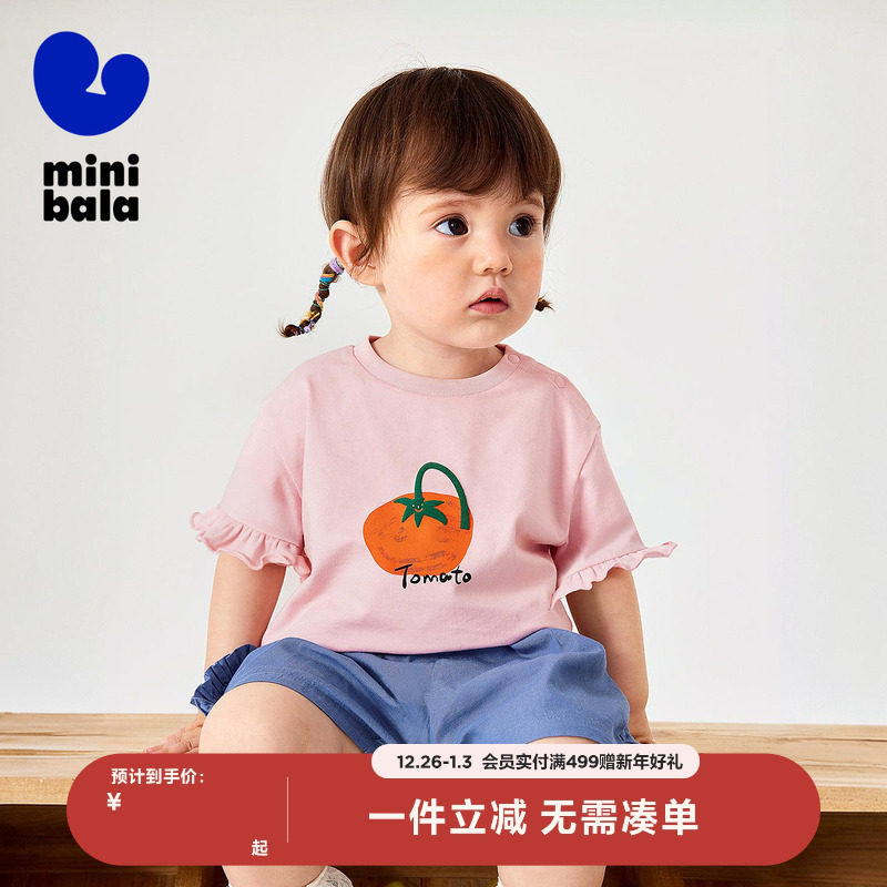 迷你巴拉巴拉女宝宝短袖T恤夏装新品甜美荷叶边亲肤婴儿透气打底