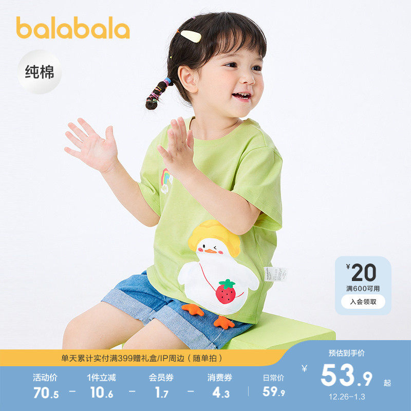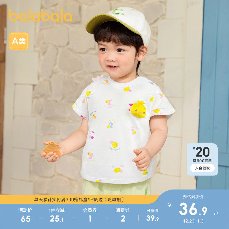 巴拉巴拉童装儿童宝宝短袖t恤女童男童2025新款夏装婴儿纯棉上衣