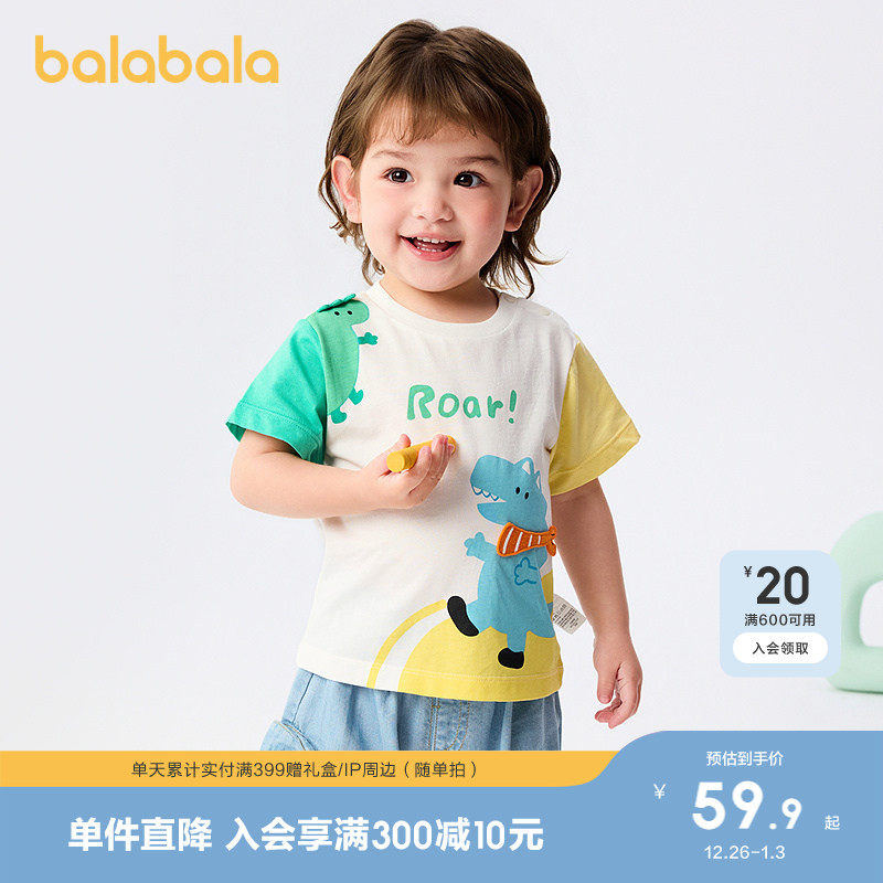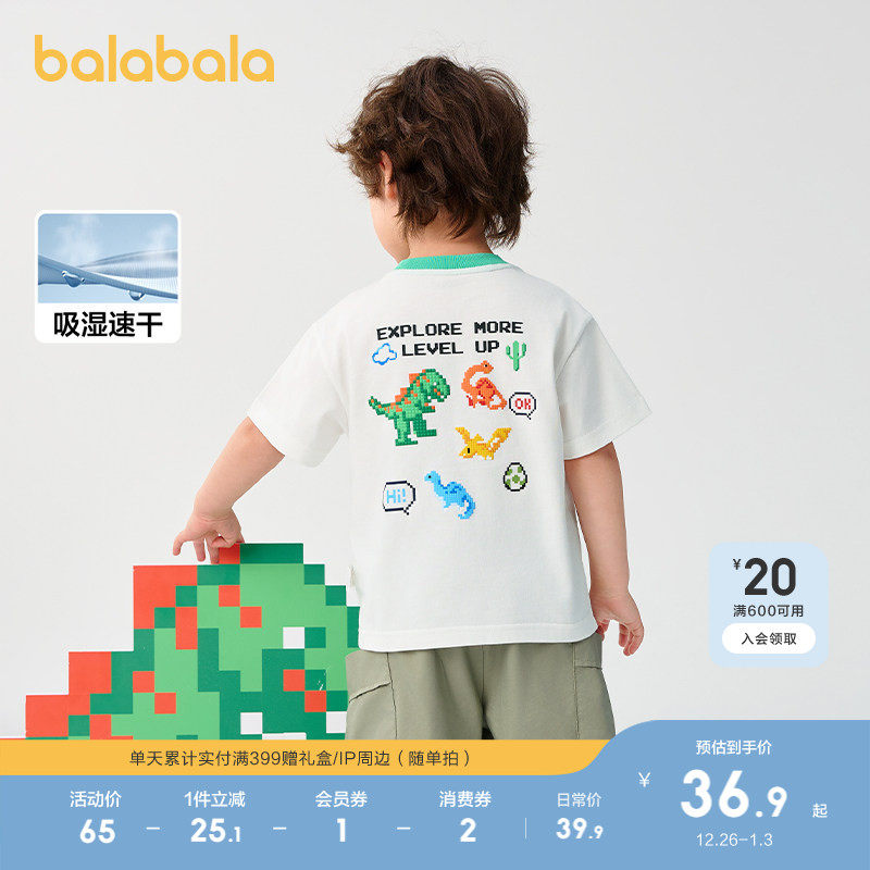 巴拉巴拉童装宝宝短袖T恤吸湿速干纯棉上衣男童2025夏季新款恐龙