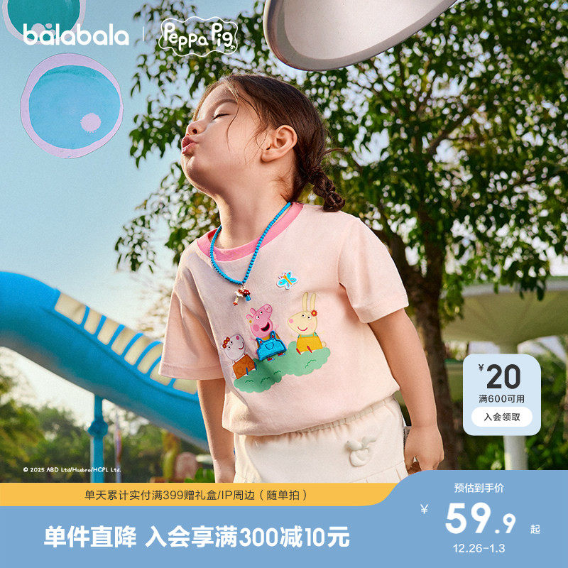 【小猪佩奇】巴拉巴拉童装宝宝短袖t恤男童2025新款夏季婴儿上衣