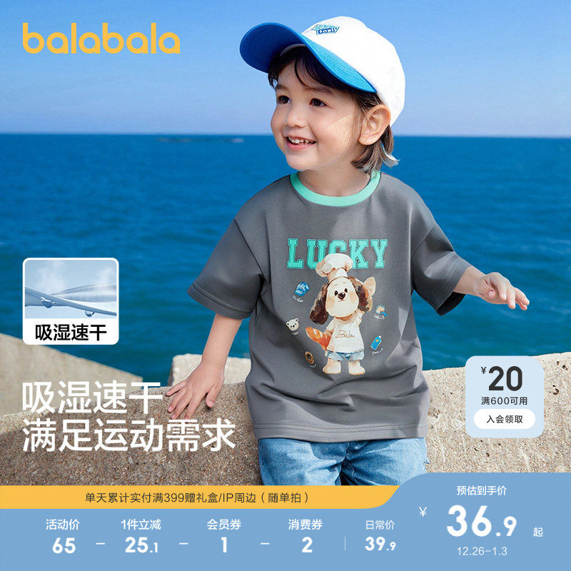 巴拉巴拉童装宝宝短袖t恤婴儿打底衫男童上衣儿童2025新夏季速干