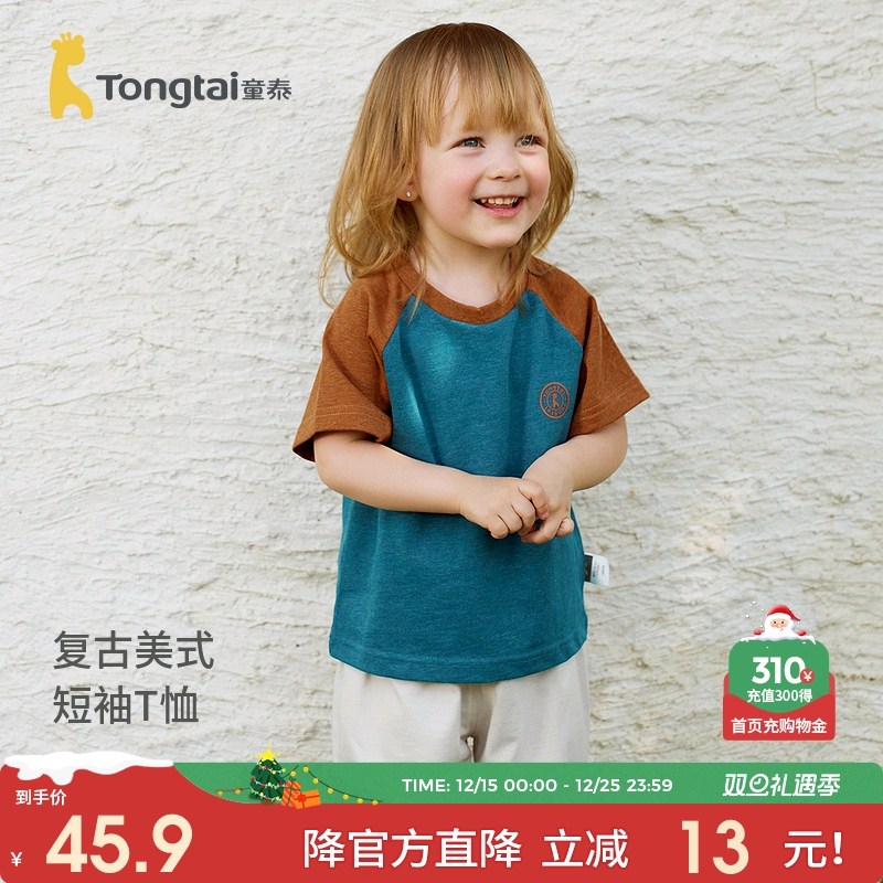 童泰宝宝短袖T恤夏季纯棉儿童薄款上衣男童女童休闲外出时尚童装