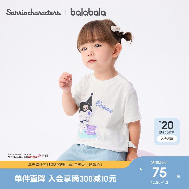 【三丽鸥IP】巴拉巴拉宝宝短袖t恤女童2025夏季新款内搭休闲上衣