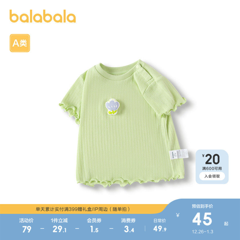 巴拉巴拉童装宝宝短袖t恤婴儿女童上衣2025夏装透气清新舒适时髦