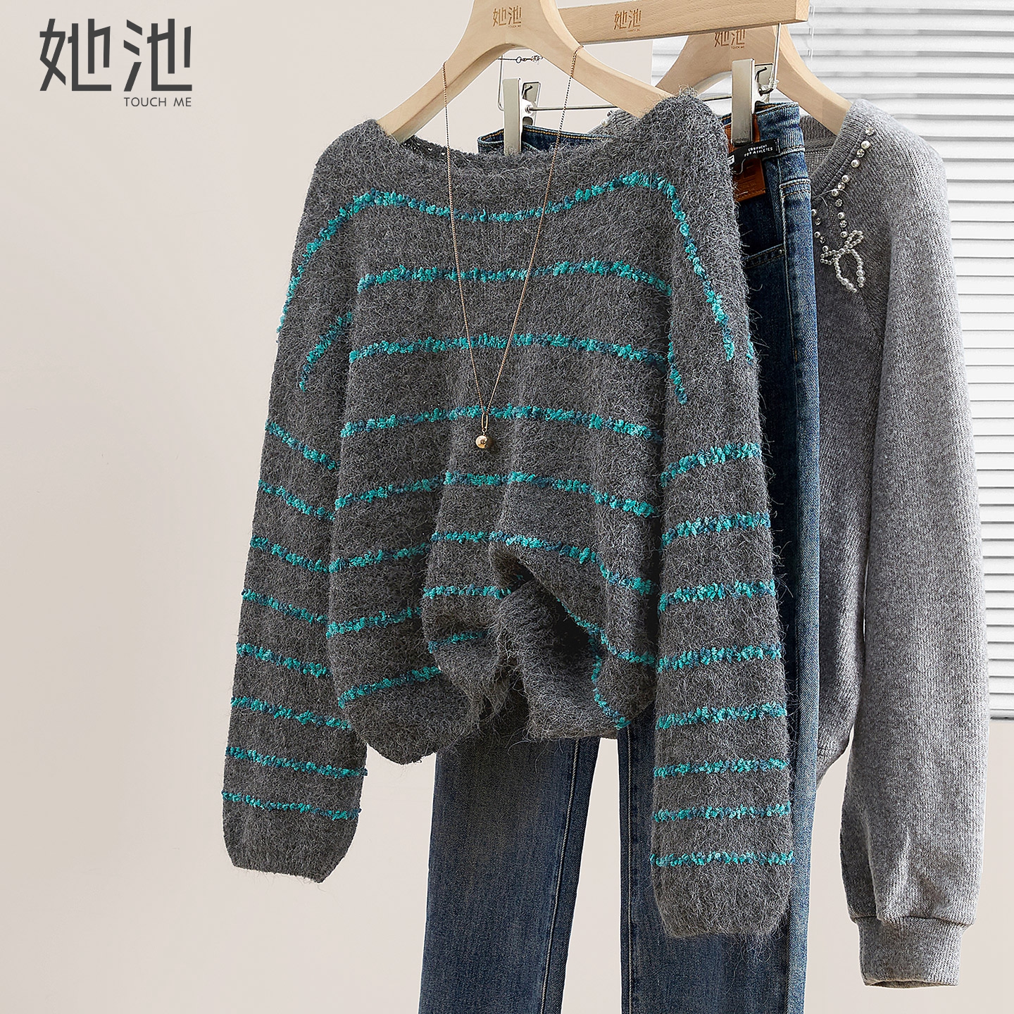 软糯慵懒风针织毛衣女秋冬2025新款温柔韩系宽松套头条纹短款上衣