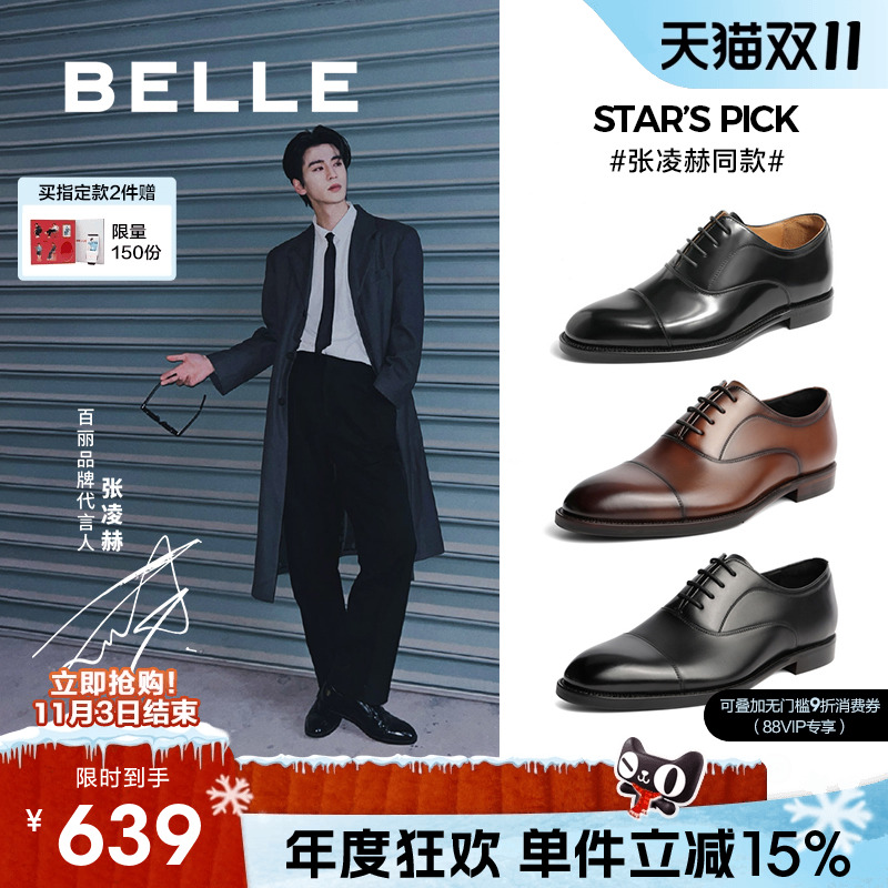 张凌赫同款百丽鞋子男商务正装牛津皮鞋男内增高三接头婚鞋59736