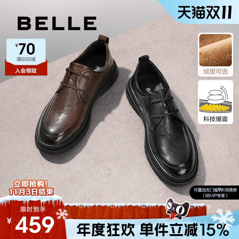 百丽男鞋商务正装鞋加绒婚鞋男士真皮鞋内增高通勤德比鞋A1095AM3