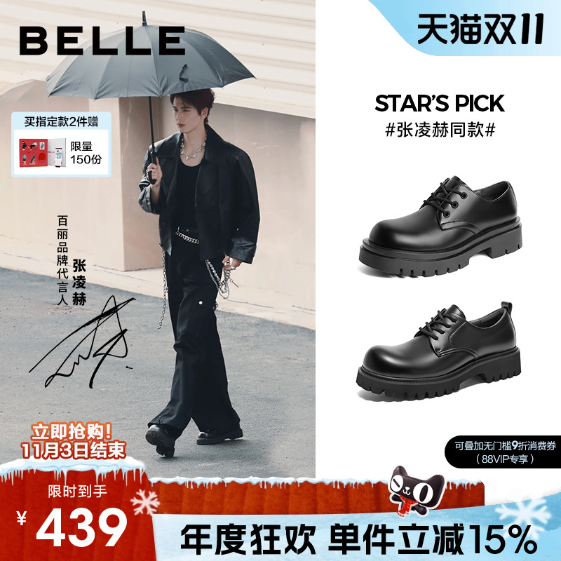 张凌赫同款百丽男鞋冬季新款厚底增高皮鞋大头休闲德比鞋A1434AM4