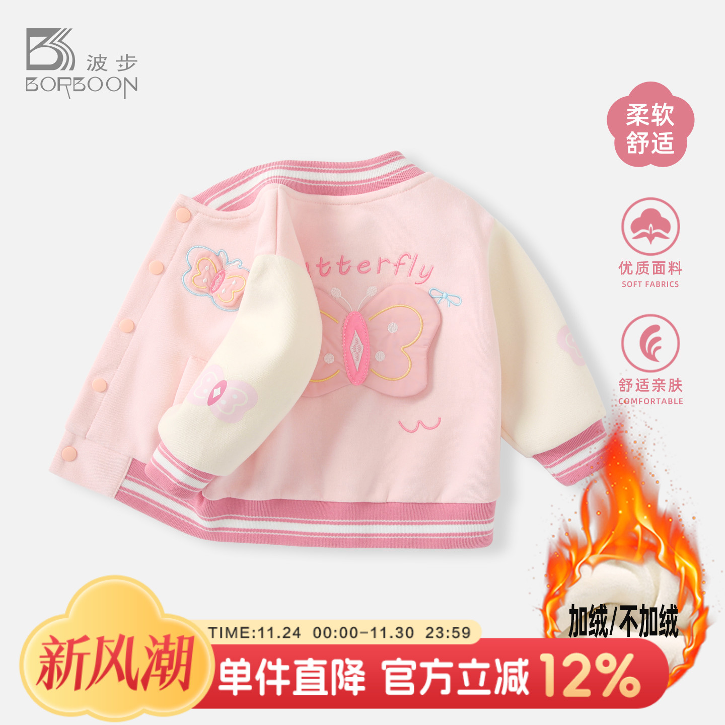 婴儿外套秋冬新款女宝宝加绒棒球服女童卫衣冬装加厚上衣儿童衣服