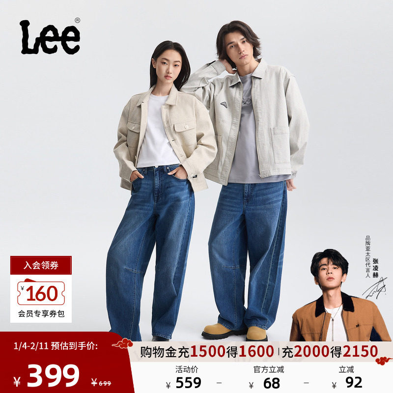 【张凌赫代言】Lee25秋冬新品宽松蓝色男女同款宽腿牛仔裤弯刀裤